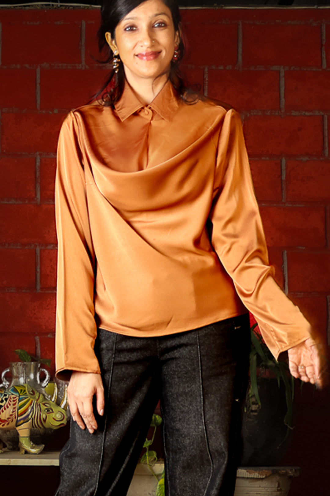 Relaxed Fit High-Waisted Velvet Corduroy Pants in Walnut Brown